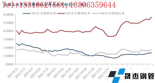 2022年1-4月,國內33家不銹無縫厚壁鋼管廠家(含新增無縫厚壁鋼管廠家江蘇眾拓)粗鋼產量1056.97萬噸,同比減少5.95%,其中200系313.58萬噸,同比減少15.6%;300系530.13萬噸,同比增加4.22%;400系213.26萬噸,同比減少12.45%。