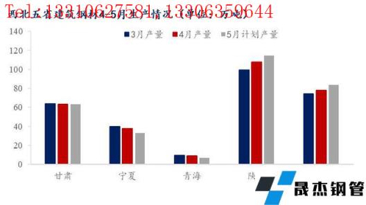 陜西區(qū)域:5月陜西主要無(wú)縫厚壁鋼管廠家建筑厚壁無(wú)縫鋼管總產(chǎn)量114.7萬(wàn)噸,其中螺紋鋼計(jì)劃產(chǎn)量86.8萬(wàn)噸,較4月增加7.3萬(wàn)噸;線盤(pán)計(jì)劃產(chǎn)量27.9萬(wàn)噸,較4月減少0.1萬(wàn)噸。