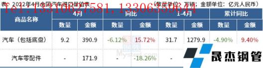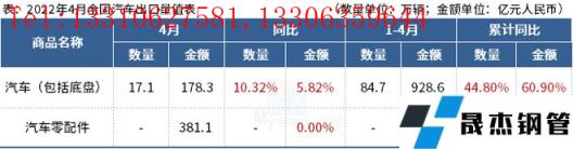 免責聲明:本網站(山東聊城晟杰無縫鋼管廠www.hccoo.com)刊載的“海關總署:4月中國出口汽車17.1萬輛,同比增長10.32%”等均源于網絡,版權歸原作者所有,且僅代表原作者觀點,本文所載信息僅供參考。轉載僅為學習與交流之目的,如無意中侵犯您的合法權益,請及時聯系刪除。本網站刊登此篇文章并不意味著本站贊同其觀點或證實其內容的真實性,我們不對其科學性、嚴肅性等作任何形式的保證。如果侵犯了您的版權,請盡快聯系我們予以撤銷,謝謝合作!