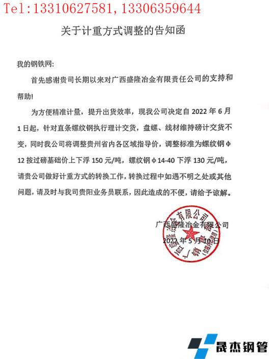 免責(zé)聲明:本網(wǎng)站(山東聊城晟杰無(wú)縫鋼管廠www.hccoo.com)刊載的“廣西盛隆冶金有限公司關(guān)于對(duì)貴州區(qū)域計(jì)重方式調(diào)整的告知函”等均源于網(wǎng)絡(luò),版權(quán)歸原作者所有,且僅代表原作者觀點(diǎn),本文所載信息僅供參考。轉(zhuǎn)載僅為學(xué)習(xí)與交流之目的,如無(wú)意中侵犯您的合法權(quán)益,請(qǐng)及時(shí)聯(lián)系刪除。本網(wǎng)站刊登此篇文章并不意味著本站贊同其觀點(diǎn)或證實(shí)其內(nèi)容的真實(shí)性,我們不對(duì)其科學(xué)性、嚴(yán)肅性等作任何形式的保證。如果侵犯了您的版權(quán),請(qǐng)盡快聯(lián)系我們予以撤銷,謝謝合作!