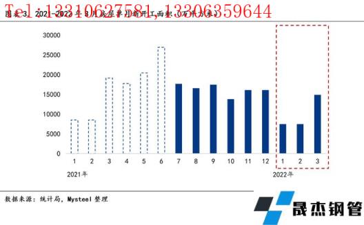 房地產新周期下,房企拿地成為房屋新開工較好的領先指標,而厚壁無縫鋼管需求處于房地產開發的前周期,短期內受到新開工面積的直接影響(通常開發商在拿地后1-6月新開工,房屋開工后1-2月內進入用鋼高峰)。注:房地產開發建設周期(拿地-開工-施工-竣工-銷售-交付裝修)。