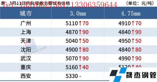 5月11日,國內厚壁無縫鋼管市場上漲為主,唐山鋼坯出廠價格漲20報4640元/噸。成交方面,市場心態修復,投機需求有所增加,低價資源消失。