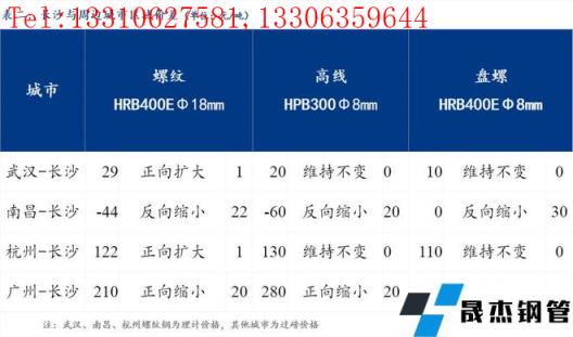 統(tǒng)一為理計(jì)單位后,武漢高于長(zhǎng)沙29元/噸,南昌低于長(zhǎng)沙44元/噸,杭州高于長(zhǎng)沙122元/噸,廣州高于長(zhǎng)沙210元/噸。