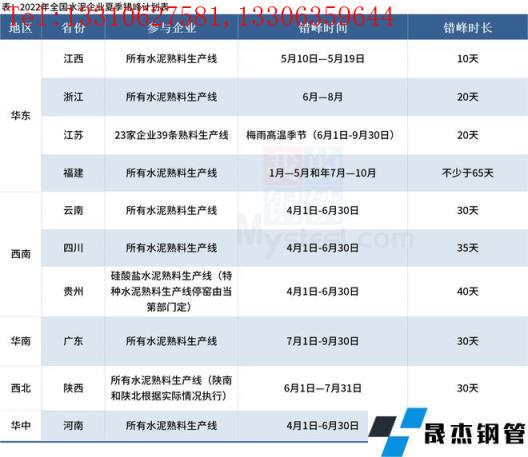 今年二季度以來,全國疫情疫情多點散發,目前水泥行業需求階段性受阻,多地發布二季度水泥錯峰生產計劃。相比去年,今年水泥企業錯峰生產時間普遍延長,且表現出嚴格執行、常態化進行、因地制宜等特點。