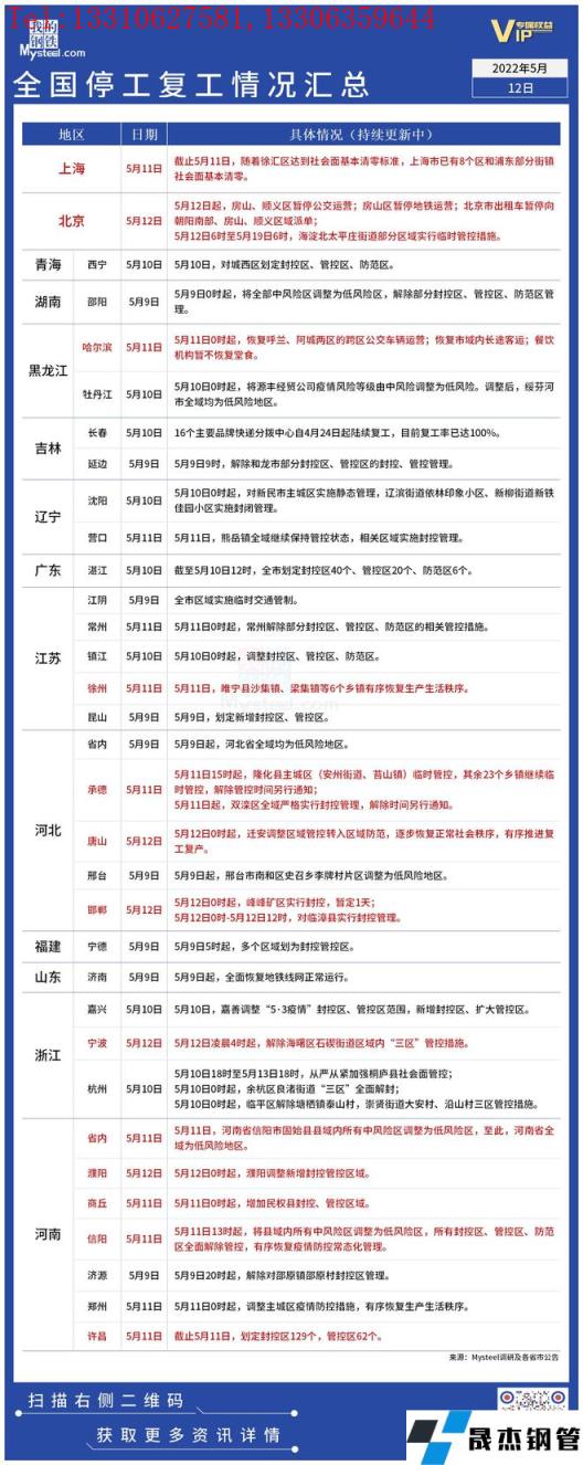 免責聲明:本網站(山東聊城晟杰無縫鋼管廠www.hccoo.com)刊載的“疫情影響丨全國停工復工情況匯總(5月12日)”等均源于網絡,版權歸原作者所有,且僅代表原作者觀點,本文所載信息僅供參考。轉載僅為學習與交流之目的,如無意中侵犯您的合法權益,請及時聯系刪除。本網站刊登此篇文章并不意味著本站贊同其觀點或證實其內容的真實性,我們不對其科學性、嚴肅性等作任何形式的保證。如果侵犯了您的版權,請盡快聯系我們予以撤銷,謝謝合作!