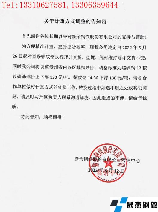 免責聲明:本網站(山東聊城晟杰無縫鋼管廠www.hccoo.com)刊載的“新余鋼鐵股份有限公司關于對貴州區域計重方式調整的告知函”等均源于網絡,版權歸原作者所有,且僅代表原作者觀點,本文所載信息僅供參考。轉載僅為學習與交流之目的,如無意中侵犯您的合法權益,請及時聯系刪除。本網站刊登此篇文章并不意味著本站贊同其觀點或證實其內容的真實性,我們不對其科學性、嚴肅性等作任何形式的保證。如果侵犯了您的版權,請盡快聯系我們予以撤銷,謝謝合作!