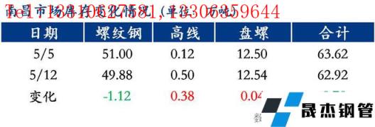 分品種來(lái)看,以南昌市場(chǎng)為例,本周南昌市場(chǎng)建筑厚壁無(wú)縫鋼管總庫(kù)存為62.92萬(wàn)噸,其中螺紋鋼庫(kù)存為49.88萬(wàn)噸,周環(huán)比減少1.12萬(wàn)噸,降幅為2.20%;高線庫(kù)存為0.50萬(wàn)噸,周環(huán)比增加0.38萬(wàn)噸,增幅為300.40%;盤(pán)螺庫(kù)存為12.54萬(wàn)噸,周環(huán)比增加0.04噸,增幅為0.35%。從資源占比來(lái)看,螺紋鋼資源占比79.27%,線盤(pán)資源占比20.73%,螺紋鋼占比小幅減少,據(jù)了解,主要是由于近期線材利潤(rùn)偏高,故無(wú)縫厚壁鋼管廠家最近開(kāi)始增加線材的產(chǎn)量。