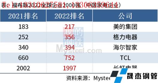 免責聲明:本網站(山東聊城晟杰無縫鋼管廠www.hccoo.com)刊載的“中國5家家電企業上榜福布斯2022全球企業2000強”等均源于網絡,版權歸原作者所有,且僅代表原作者觀點,本文所載信息僅供參考。轉載僅為學習與交流之目的,如無意中侵犯您的合法權益,請及時聯系刪除。本網站刊登此篇文章并不意味著本站贊同其觀點或證實其內容的真實性,我們不對其科學性、嚴肅性等作任何形式的保證。如果侵犯了您的版權,請盡快聯系我們予以撤銷,謝謝合作!