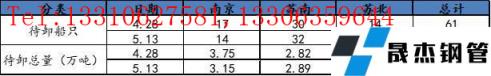 此次調(diào)研選取了南京、蘇州、無(wú)錫、常州、南通、徐州、揚(yáng)州、鹽城八個(gè)城市,以建筑厚壁無(wú)縫鋼管為主要庫(kù)存的20家倉(cāng)庫(kù)。通過匯總了解,當(dāng)前樣本倉(cāng)庫(kù)碼頭累計(jì)待卸船只總計(jì)53只,待卸總量達(dá)6.69萬(wàn)噸。