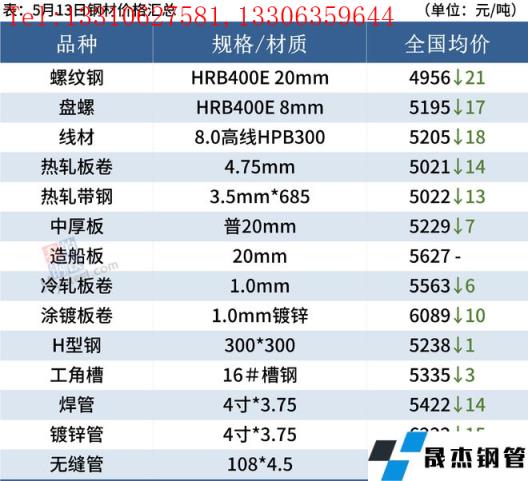 5月13日,國內厚壁無縫鋼管市場下跌為主,唐山鋼坯出廠價格穩報4660元/噸。因南方多省份受強降雨影響,今日上午鋼市成交量延續低迷,午后隨著期鋼探底回升,部分城市低位資源成交好轉。