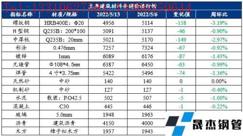 免責聲明:本網站(山東聊城晟杰無縫鋼管廠www.hccoo.com)刊載的“建筑原材料周報(5.9-5.13)”等均源于網絡,版權歸原作者所有,且僅代表原作者觀點,本文所載信息僅供參考。轉載僅為學習與交流之目的,如無意中侵犯您的合法權益,請及時聯系刪除。本網站刊登此篇文章并不意味著本站贊同其觀點或證實其內容的真實性,我們不對其科學性、嚴肅性等作任何形式的保證。如果侵犯了您的版權,請盡快聯系我們予以撤銷,謝謝合作!