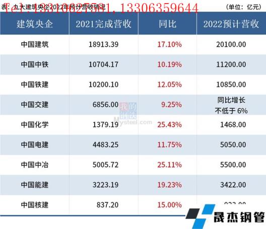 免責聲明:本網站(山東聊城晟杰無縫鋼管廠www.hccoo.com)刊載的“9大建筑央企預計2022年營收超6.6萬億元”等均源于網絡,版權歸原作者所有,且僅代表原作者觀點,本文所載信息僅供參考。轉載僅為學習與交流之目的,如無意中侵犯您的合法權益,請及時聯系刪除。本網站刊登此篇文章并不意味著本站贊同其觀點或證實其內容的真實性,我們不對其科學性、嚴肅性等作任何形式的保證。如果侵犯了您的版權,請盡快聯系我們予以撤銷,謝謝合作!