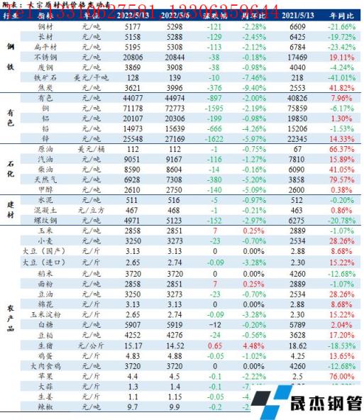 免責聲明:本網站(山東聊城晟杰無縫鋼管廠www.hccoo.com)刊載的“周報:大宗工業原材料、能源及農產品價格周報(5.09-5.13)”等均源于網絡,版權歸原作者所有,且僅代表原作者觀點,本文所載信息僅供參考。轉載僅為學習與交流之目的,如無意中侵犯您的合法權益,請及時聯系刪除。本網站刊登此篇文章并不意味著本站贊同其觀點或證實其內容的真實性,我們不對其科學性、嚴肅性等作任何形式的保證。如果侵犯了您的版權,請盡快聯系我們予以撤銷,謝謝合作!