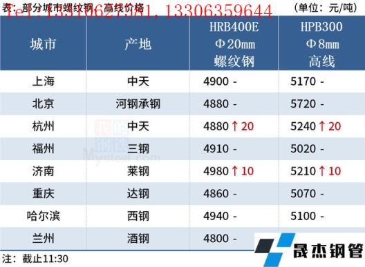 ◎濟南:17日早盤建材市場價格漲10。萊鋼螺紋4910,永鋒、石橫螺紋4910,永鋒、石橫盤螺5210。(單位:元/噸)