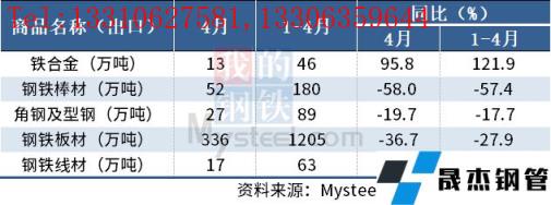 免責聲明:本網站(山東聊城晟杰無縫鋼管廠www.hccoo.com)刊載的“海關總署:4月中國出口板材336萬噸,同比降36.7%”等均源于網絡,版權歸原作者所有,且僅代表原作者觀點,本文所載信息僅供參考。轉載僅為學習與交流之目的,如無意中侵犯您的合法權益,請及時聯系刪除。本網站刊登此篇文章并不意味著本站贊同其觀點或證實其內容的真實性,我們不對其科學性、嚴肅性等作任何形式的保證。如果侵犯了您的版權,請盡快聯系我們予以撤銷,謝謝合作!