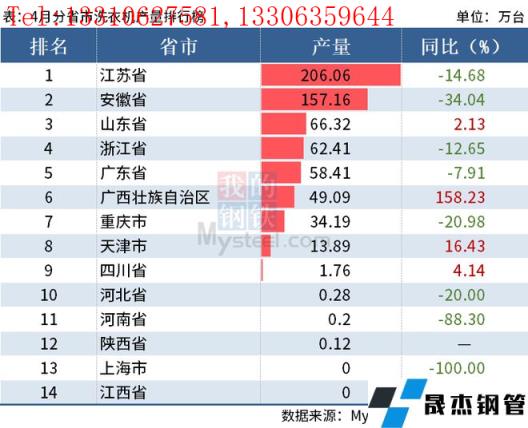 從分省市數(shù)據(jù)來(lái)看,4月江蘇、安徽洗衣機(jī)產(chǎn)量超100萬(wàn)臺(tái),其中江蘇省以產(chǎn)量206.06萬(wàn)臺(tái)排名第一,安徽省產(chǎn)量157.16萬(wàn)臺(tái)排名第二,山東省產(chǎn)量66.32萬(wàn)臺(tái)排名第三。