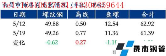 分品種來看,以南昌市場為例,本周南昌市場建筑厚壁無縫鋼管總庫存為61.39萬噸,其中螺紋鋼庫存為49.26萬噸,周環(huán)比減少0.62萬噸,降幅為1.24%;高線庫存為0.77萬噸,周環(huán)比增加0.27萬噸,增幅為54.0%;盤螺庫存為11.36萬噸,周環(huán)比減少1.18噸,降幅為9.41%。從資源占比來看,螺紋鋼資源占比80.23%,線盤資源占比19.77%,螺紋鋼占比較上周基本持平。