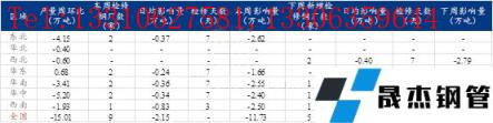 本周(5月12日-18日)調研螺紋鋼調研樣本中共有9家無縫厚壁鋼管廠家存在螺紋產線檢修,共影響產量11.73萬噸。其中東北、華東、華南、華中各7家,分別影響產量2.62、1.66、2.55、2.4萬噸;西南1家,影響產量2.5萬噸。
