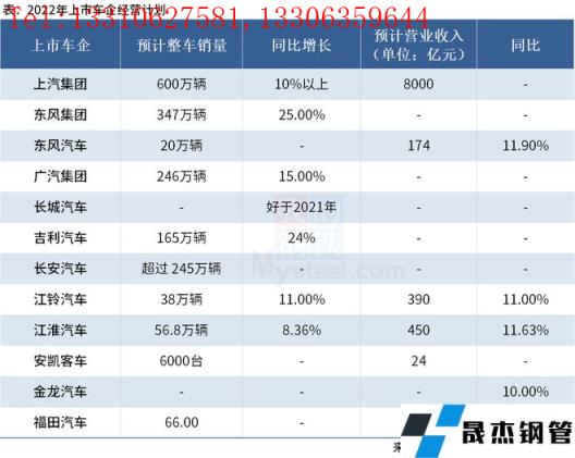 免責聲明:本網站(山東聊城晟杰無縫鋼管廠www.hccoo.com)刊載的“12家上市車企公布2022年經營計劃”等均源于網絡,版權歸原作者所有,且僅代表原作者觀點,本文所載信息僅供參考。轉載僅為學習與交流之目的,如無意中侵犯您的合法權益,請及時聯系刪除。本網站刊登此篇文章并不意味著本站贊同其觀點或證實其內容的真實性,我們不對其科學性、嚴肅性等作任何形式的保證。如果侵犯了您的版權,請盡快聯系我們予以撤銷,謝謝合作!