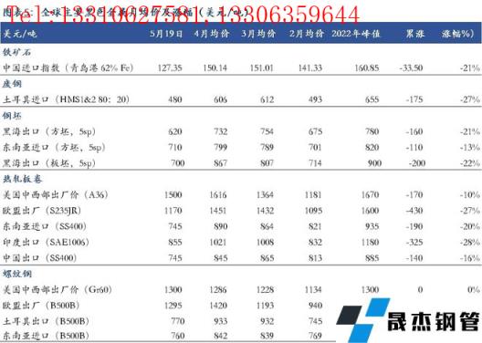截至5月19日,中國鐵礦石進口從4月初峰值累計下跌21%,土耳其廢鋼累計跌幅達到27%。從各品種區域價格走勢來看,熱卷綜合跌幅達到20%,而螺紋鋼跌幅在8%左右,歐洲熱卷價格累計跌幅為27%,相比之下美國跌幅最小,約10%。(圖表5)
