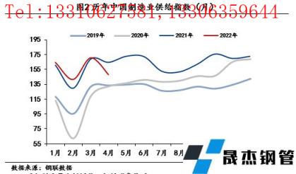鋼鐵是終端制造業的重要生產原材料,以鋼鐵消費趨勢為觀測視角可以較為準確的判斷下游制造業發展狀況。4月鋼鐵業供給指數為186.38,同比下降8.74%,環比增長6.78%。供應方面,4月份唐山地區疫情影響因素減弱,無縫厚壁鋼管廠家陸續復產,據統計,4月五大品種產量環比增長3.6%。消費方面,五大品種厚壁無縫鋼管消費環比增長3.4%,同比下降16%。具體來看,受疫情和房企資金緊張影響,房地產投資和施工活動均受限,4月建筑厚壁無縫鋼管表觀消費量同比下降28%,是厚壁無縫鋼管消費的主要拖累項。制造業方面,疫情對制造業供應鏈沖擊較大,4月PMI指數錄得47.4%,環比上月繼續大幅下滑2.1個百分點,是2020年疫情以來最低的水平,企業生產、訂單指數明顯下滑,熱卷消費同比下降3.45%。