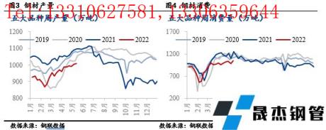 煤炭方面,今年以來,焦煤市場長期面臨需求增長與供應不足的矛盾。澳煤進口禁止,蒙煤通關長期維持偏低水平,是今年焦煤供應緊張的重要原因。4月疫情對山西物流運輸影響較大,導致煉焦煤價格市場價格體現總體進一步拉漲。動力煤供需格局繼續趨于寬松,價格呈現震蕩回落。厚壁無縫鋼管方面,4月厚壁無縫鋼管月均價小幅上漲,雖受疫情影響,4月厚壁無縫鋼管消費整體偏疲軟,但在"穩增長"目標指引下,市場對后市厚壁無縫鋼管消費仍抱有較高期待,挺價意愿較強,且焦炭價格拉漲,對厚壁無縫鋼管價格支撐作用較強。4月份,十種有色金屬產量553萬噸,同比小幅增長0.3%。需求端表現一般。受疫情和房企資金偏緊影響,房地產投資和施工活動表現不樂觀,4月房地產投資增速由正轉負,新開工面積同比下降44%;另外,疫情對制造業供應鏈造成嚴重沖擊,4月份汽車產量同比下降46%,創近十年同期低位;受房地產和基建工程開工率低迷等因素影響,4月份挖掘機銷售量同比下降47%。;家電方面,出口需求回落,冰箱洗衣機產量大幅下滑,空調產量小幅下降。整體看,4月煤炭價格繼續拉漲,下游消費偏弱。