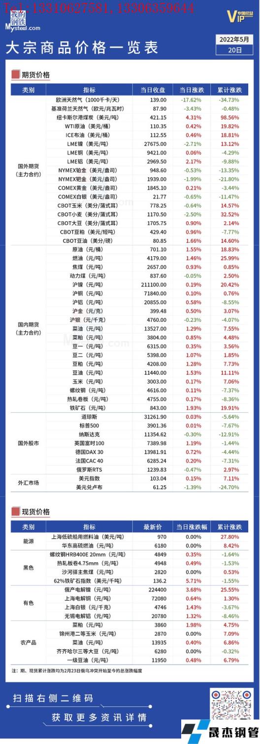 免責聲明:本網(wǎng)站(山東聊城晟杰無縫鋼管廠www.hccoo.com)刊載的“俄烏局勢丨大宗商品價格一覽表(5月20日)”等均源于網(wǎng)絡,版權歸原作者所有,且僅代表原作者觀點,本文所載信息僅供參考。轉載僅為學習與交流之目的,如無意中侵犯您的合法權益,請及時聯(lián)系刪除。本網(wǎng)站刊登此篇文章并不意味著本站贊同其觀點或證實其內容的真實性,我們不對其科學性、嚴肅性等作任何形式的保證。如果侵犯了您的版權,請盡快聯(lián)系我們予以撤銷,謝謝合作!