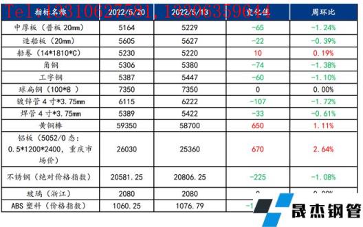 截止2022年5月20日,各原材料當(dāng)日即時價格以及價格周環(huán)比情況如下: