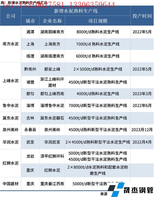 免責聲明:本網站(山東聊城晟杰無縫鋼管廠www.hccoo.com)刊載的“:5月新增11條熟料水泥生產線,紅獅產能最大”等均源于網絡,版權歸原作者所有,且僅代表原作者觀點,本文所載信息僅供參考。轉載僅為學習與交流之目的,如無意中侵犯您的合法權益,請及時聯系刪除。本網站刊登此篇文章并不意味著本站贊同其觀點或證實其內容的真實性,我們不對其科學性、嚴肅性等作任何形式的保證。如果侵犯了您的版權,請盡快聯系我們予以撤銷,謝謝合作!