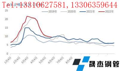 近期石家莊地區建筑厚壁無縫鋼管價格跌幅相對較大,主要是由于前期價格持續堅挺,近期受到周邊市場低價的沖擊,以及期貨持續偏弱運行,出貨情況不理解,因此商家心態略顯悲觀,價格下跌較快,當前價格和北京的價差近期持續收窄。三、資源供應仍相對偏少雖然近期無縫厚壁鋼管廠家螺紋鋼產能利用率達到今年以來的高點,但與前幾年同期水平相比,仍處于偏低水平,尤其是疫情的反復,以及部分無縫厚壁鋼管廠家螺紋、板材間的鐵水切換等因素影響,后期產量增加不會很大,因此供給壓力不會太大。