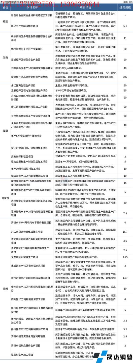 免責聲明:本網站(山東聊城晟杰無縫鋼管廠www.hccoo.com)刊載的“總規模近600億,39個涉鋁項目開始招商”等均源于網絡,版權歸原作者所有,且僅代表原作者觀點,本文所載信息僅供參考。轉載僅為學習與交流之目的,如無意中侵犯您的合法權益,請及時聯系刪除。本網站刊登此篇文章并不意味著本站贊同其觀點或證實其內容的真實性,我們不對其科學性、嚴肅性等作任何形式的保證。如果侵犯了您的版權,請盡快聯系我們予以撤銷,謝謝合作!