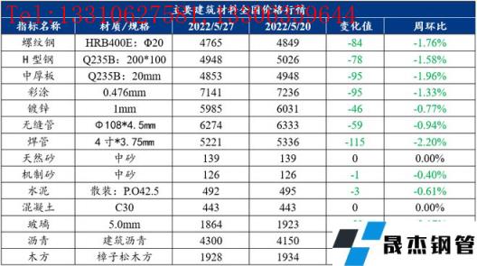 免責聲明:本網站(山東聊城晟杰無縫鋼管廠www.hccoo.com)刊載的“建筑原材料周報(5.23-5.27)”等均源于網絡,版權歸原作者所有,且僅代表原作者觀點,本文所載信息僅供參考。轉載僅為學習與交流之目的,如無意中侵犯您的合法權益,請及時聯系刪除。本網站刊登此篇文章并不意味著本站贊同其觀點或證實其內容的真實性,我們不對其科學性、嚴肅性等作任何形式的保證。如果侵犯了您的版權,請盡快聯系我們予以撤銷,謝謝合作!