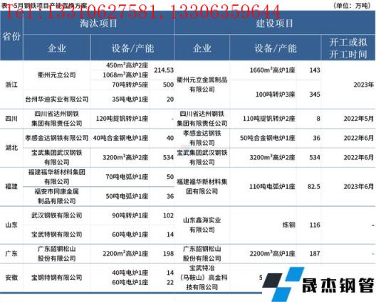 據(jù)不完全統(tǒng)計(jì),5月國(guó)內(nèi)8家無(wú)縫厚壁鋼管廠家發(fā)布鋼鐵產(chǎn)能置換方案。其中,涉及新建煉鋼產(chǎn)能623.5萬(wàn)噸,新建煉鐵產(chǎn)能864萬(wàn)噸;涉及淘汰煉鋼產(chǎn)能798萬(wàn)噸,淘汰煉鐵產(chǎn)能946.53萬(wàn)噸。