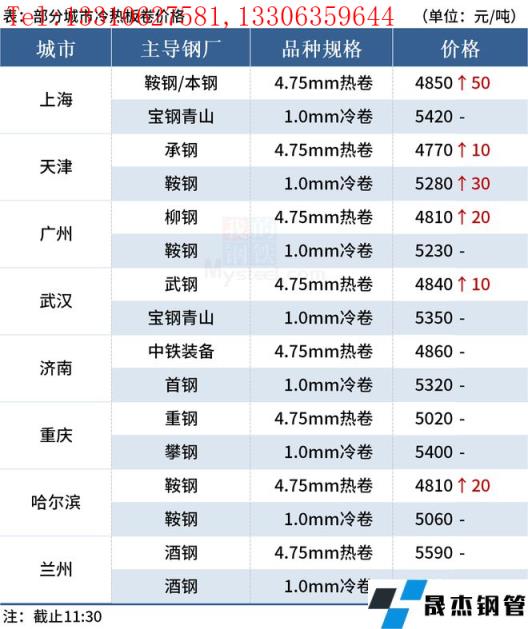◎天津:31日早盤冷軋市場價格上調30元/噸,1.0天鐵5290元/噸;首鋼5280元/噸,唐鋼5250元/噸,成交一般。(單位:元/噸)