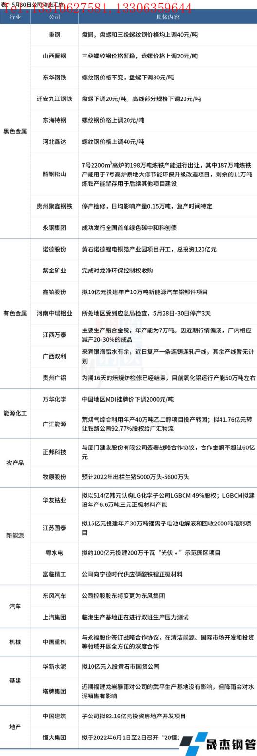 5月31日,匯總部分大宗商品相關企業動態。