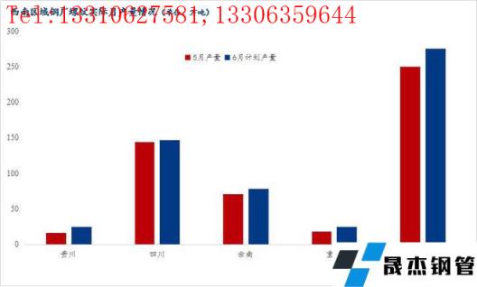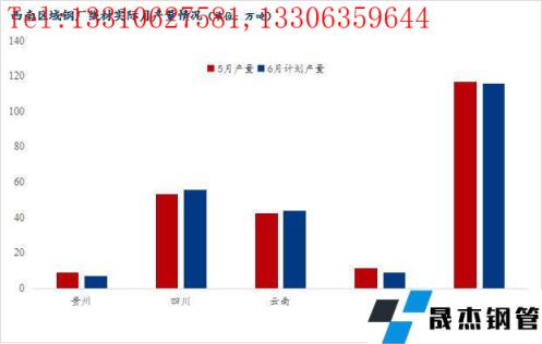 四川區(qū)域:五月四川區(qū)域無縫厚壁鋼管廠家線材實際產量53.27萬噸,六月計劃產量56萬噸,計劃產量增加2.73萬噸,環(huán)比增加5.12%。其中LG5月30號開始恢復正常生產,產量有所增加。