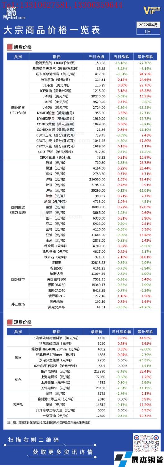 免責聲明:本網站(山東聊城晟杰無縫鋼管廠www.hccoo.com)刊載的“俄烏局勢丨大宗商品價格一覽表(6月1日)”等均源于網絡,版權歸原作者所有,且僅代表原作者觀點,本文所載信息僅供參考。轉載僅為學習與交流之目的,如無意中侵犯您的合法權益,請及時聯系刪除。本網站刊登此篇文章并不意味著本站贊同其觀點或證實其內容的真實性,我們不對其科學性、嚴肅性等作任何形式的保證。如果侵犯了您的版權,請盡快聯系我們予以撤銷,謝謝合作!