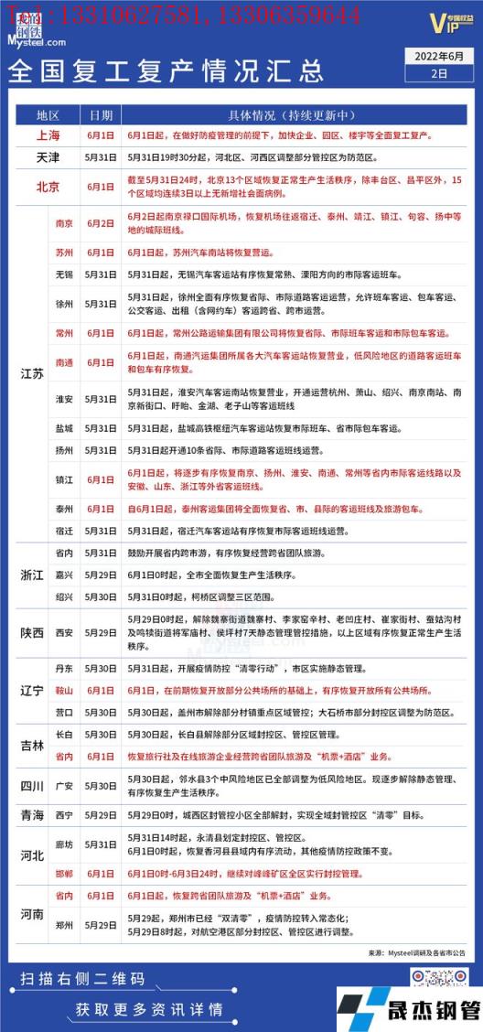 疫情影響丨全國停工復(fù)工情況匯總(6月1日)