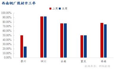 本周西南無縫厚壁鋼管廠家線材產(chǎn)能利用率57.89%,環(huán)比下降4.03%;開工率75%,環(huán)比下降3.13%;周產(chǎn)量24.72萬噸,環(huán)比減少1.72萬噸。