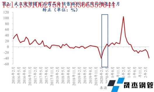 (1)在武漢疫情爆發后,新開工面積同比和商品房銷售面積同比在當年2月降幅最大,在當年5月隨即轉負為正(參見圖1和圖2)。照此推算,在不考慮房地產行業內生性下滑的情況下,僅考慮疫情因素,至少需要2-3個月時間,房地產銷售和新開工等主要指標同比增速才能轉正。