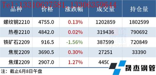 免責聲明:本網站(山東聊城晟杰無縫鋼管廠www.hccoo.com)刊載的“2022年06月08日午報:鋼價漲跌互現,鐵礦石期貨下挫”等均源于網絡,版權歸原作者所有,且僅代表原作者觀點,本文所載信息僅供參考。轉載僅為學習與交流之目的,如無意中侵犯您的合法權益,請及時聯系刪除。本網站刊登此篇文章并不意味著本站贊同其觀點或證實其內容的真實性,我們不對其科學性、嚴肅性等作任何形式的保證。如果侵犯了您的版權,請盡快聯系我們予以撤銷,謝謝合作!
