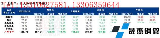 本周五大厚壁無縫鋼管品種除線材,其余均有增產。從增產品種來看,以螺紋鋼和熱軋板卷表現尤為突出,主要原因在于,前段時間卷螺因疫情管控、庫存壓力大、企業虧損、例行臨檢等原因而連續性減量,但近期上海解封、盈利水平環比提升、廠庫加快前移等操作,促使企業生產狀態步恢復。短期來看,企業生產積極性雖有提升,但是面臨粗鋼壓減政策的大環境、以及需求持續性偏弱的現實條件,不排除后仍有減產可能,生產動力持續性恢復的可能性不大。