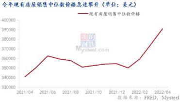 而房貸利率的飛速上漲,使得消費者的購買欲望隨之下降。再疊加美國房價居高不下,4月現有房屋銷售中位數價格同比去年上漲14.8%至391200美元,創1999年以來新高,導致房屋銷售和單戶新開工數量均出現下滑。截至4月,單戶新開工數量為110萬,已連續兩月下降,較今年2月下降9%。