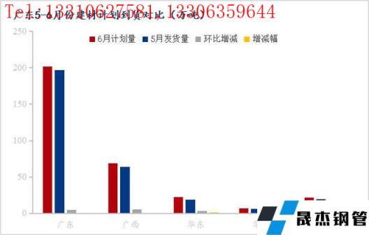 2、6月廣東地區(qū)建筑材區(qū)內(nèi)(廣東和廣西)計劃供應(yīng)量共計270.5萬噸,環(huán)比減少19.5萬噸,降幅6.7%;區(qū)外計劃供應(yīng)量為50.5萬噸,環(huán)比增加1.4萬噸,增幅2.9%;