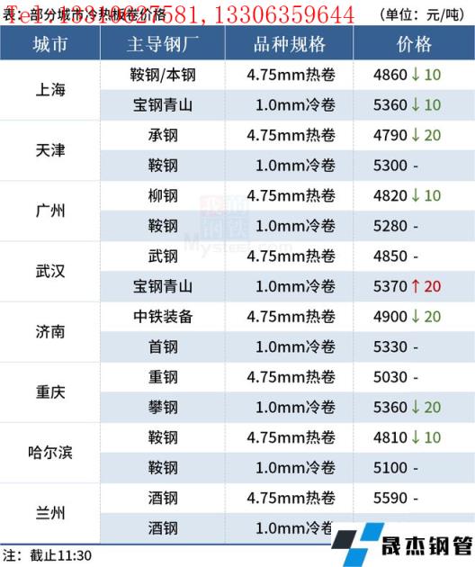◎天津:10日早盤冷軋市場價格午后價格穩,1.0天鐵5310元/噸;首鋼5300元/噸,唐鋼5270元/噸。(單位:元/噸)