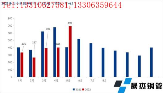 前言:海關(guān)總署6月9日數(shù)據(jù)顯示,2022年5月中國(guó)出口厚壁無(wú)縫鋼管775.9萬(wàn)噸,較上月增加278.2萬(wàn)噸,同比增長(zhǎng)47.2%,環(huán)比大幅增長(zhǎng)56.89%;1-5月累計(jì)出口厚壁無(wú)縫鋼管2591.5萬(wàn)噸,同比下降16.2%,環(huán)比增長(zhǎng)8.63%;5月中國(guó)進(jìn)口厚壁無(wú)縫鋼管80.6萬(wàn)噸,較上月減少15萬(wàn)噸,同比下降33.4%;1-5月累計(jì)進(jìn)口厚壁無(wú)縫鋼管498.0萬(wàn)噸,同比下降18.3%。