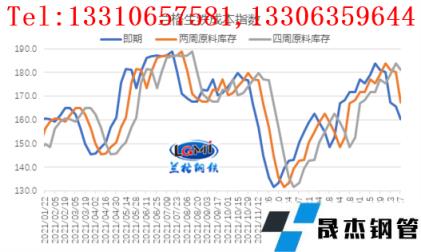 從月度均值表現來看,據研究中心監測數據顯示,5月份,即期原料成本指數均值為168.4,較4月份下降6.1%;兩周原料庫存成本指數為178.0,較4月份上升1.8%;四周原料庫存成本指數為179.8,較4月份上升5.0%。同期,綜合無縫鋼管 厚壁鋼管價格指數震蕩下行,月均值為5208元/噸,較上月下降3.6%;5月份即期成本降幅大于成品材價格跌幅,因而即期鋼企盈利空間有所改善;而原料庫存周期越長成本上升幅度越明顯,因此原料庫存周期越長,盈利收縮也越嚴重。