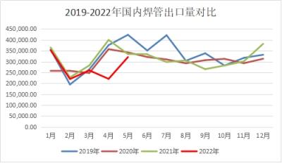 圖一 2019-2022年我國焊管出口量對比