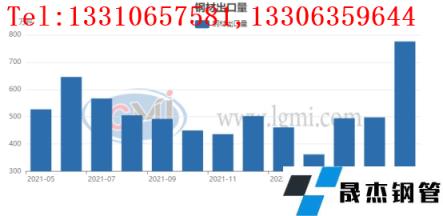 圖三2021年—2022年我國厚壁鋼管出口走勢圖