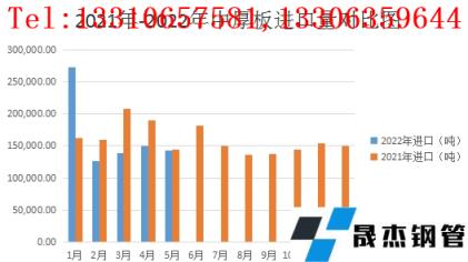 圖4 中厚板產(chǎn)品2021-2022年度進口量對比圖